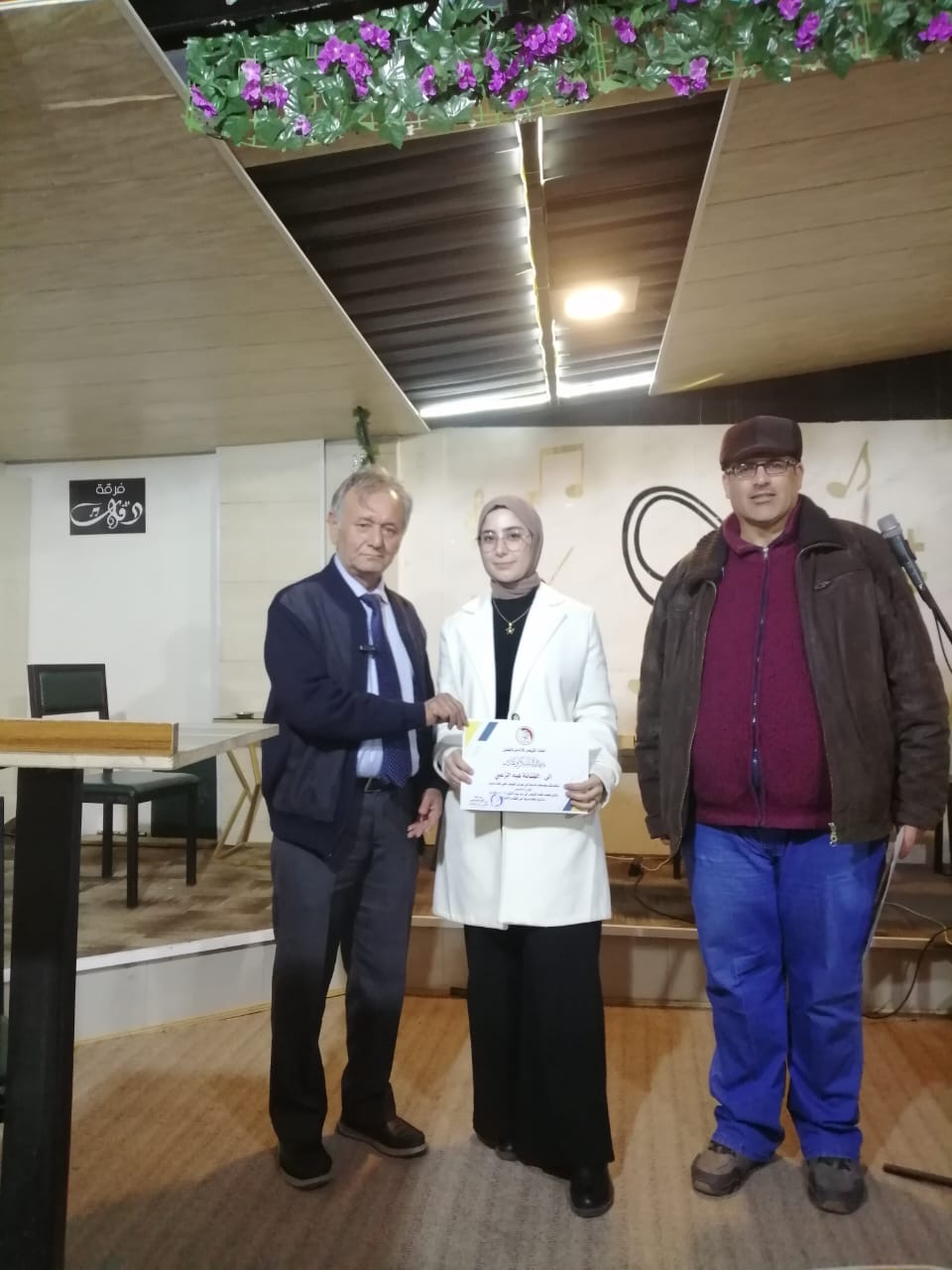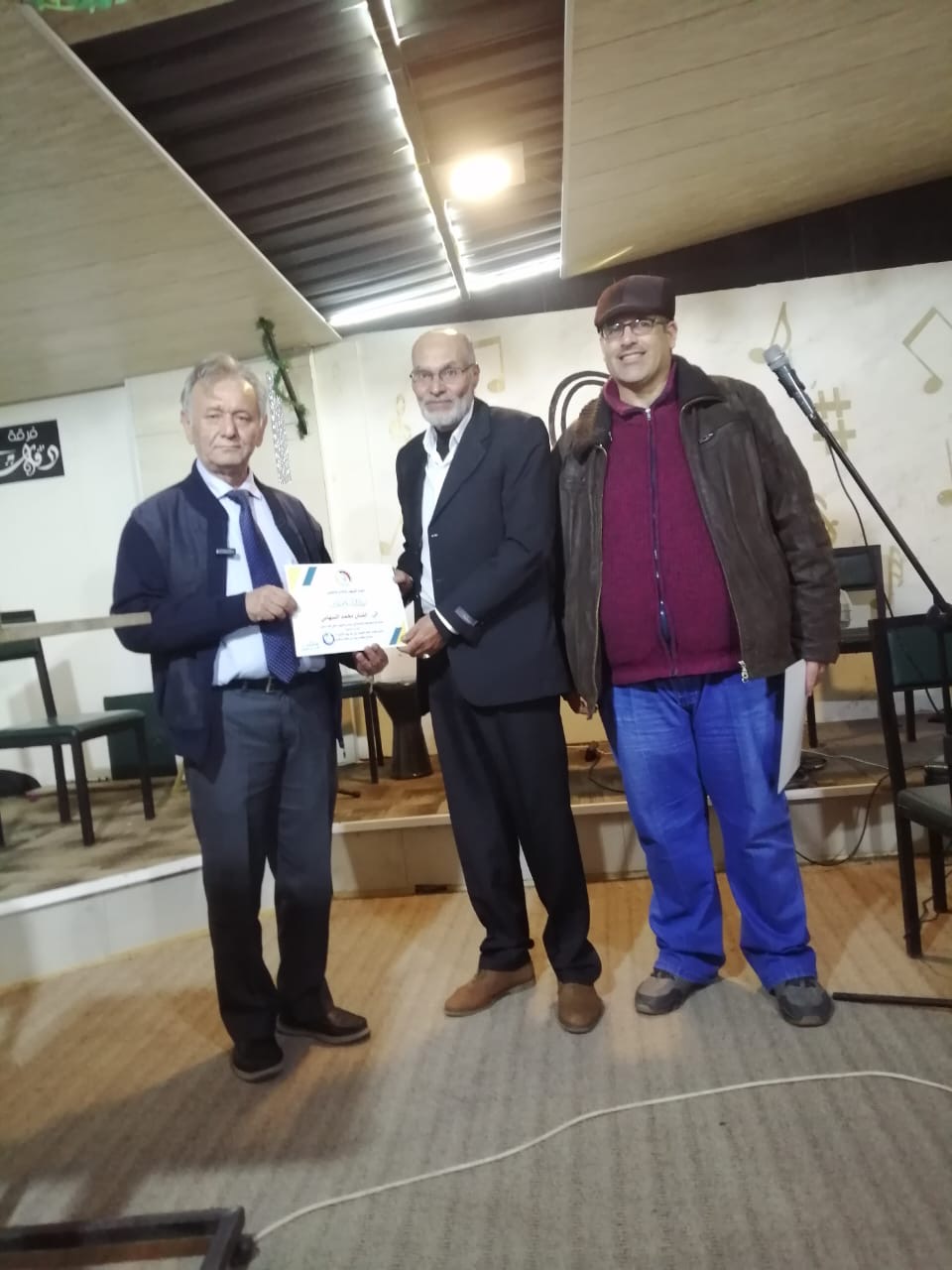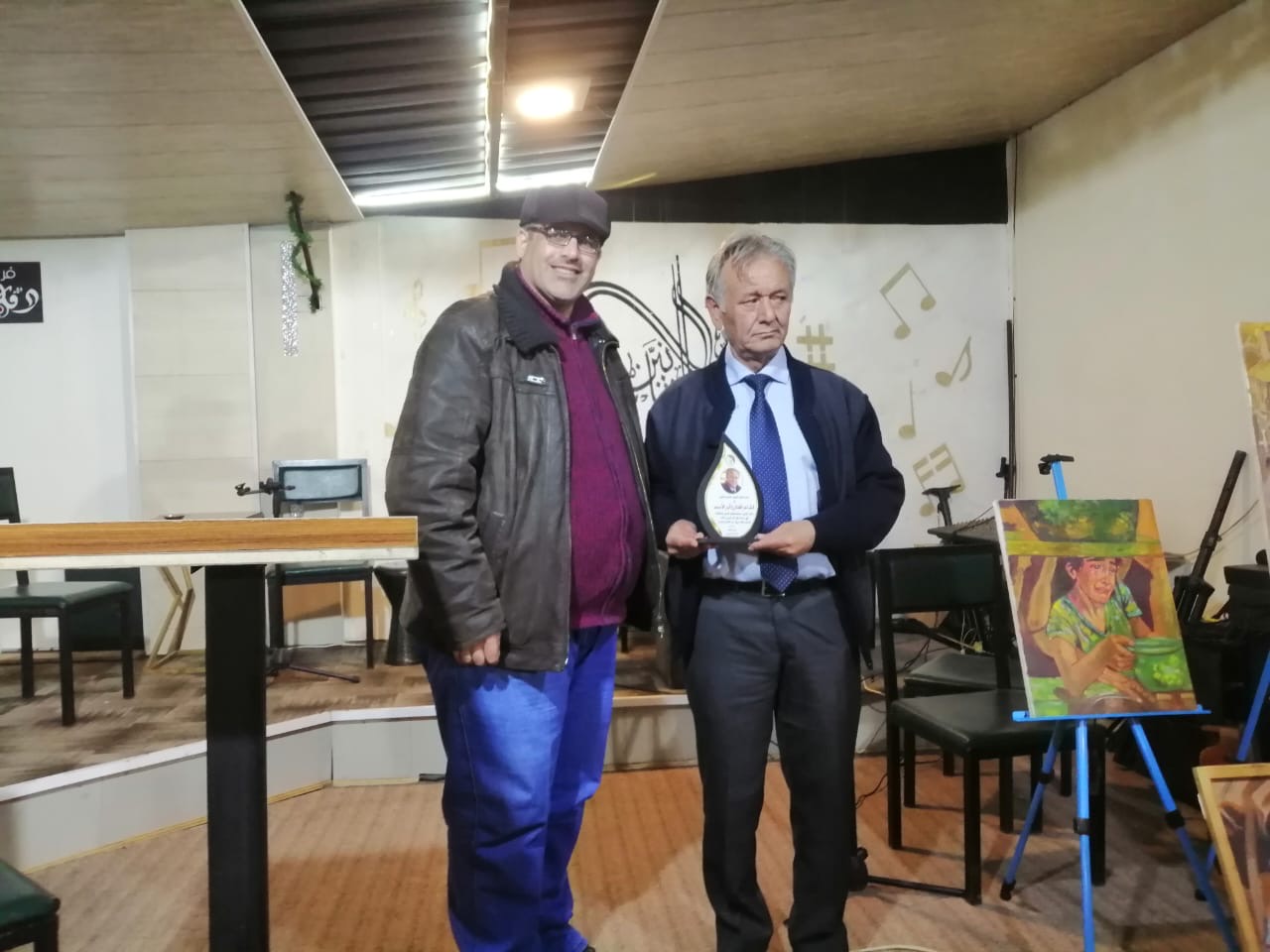 وفي نهاية الحفل قدم رئيس الاتحاد التكريمات لضيف الشرف الشاعر الفنان أنور الأسمر وللفنانين المشاركين شاكرا لنادي الفنانين إربد بقيادة الفنان جوهر الدغيمات استضافتهم لهذه الفعالية، كما أثنى العمري على دور الأردن قيادة وشعبا بوقوفهم إلى جانب الأشقاء العرب وخاصة الفلسطينيين مثمنا موقف جلالة الملك وولي عهده المشرف مع القضية الفلسطينية، مفتخرا بالأدباء والشعراء والفنانين الأردنيين في تجسيد القضايا الوطنية والعروبة في لوحاتهم وكتاباتهم…