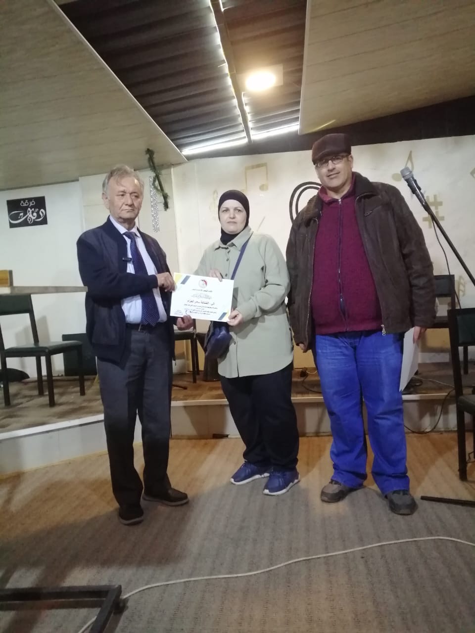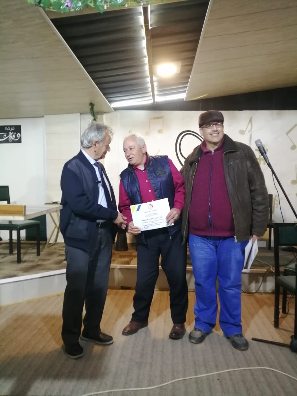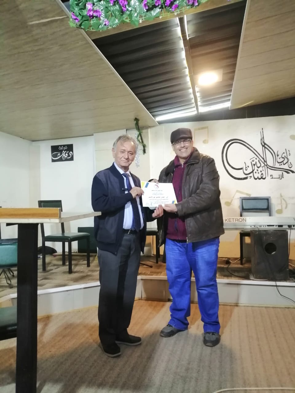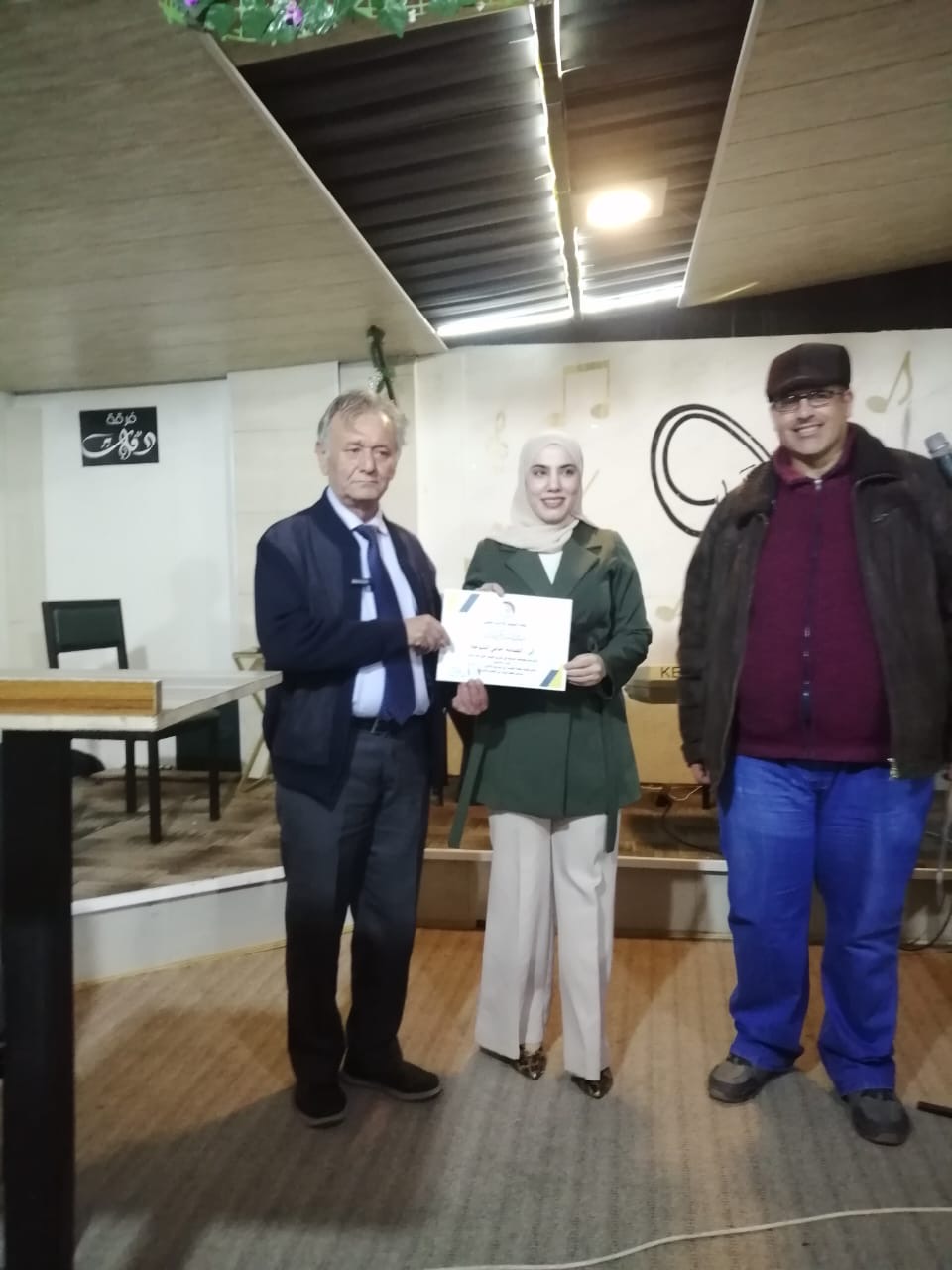 وفي نهاية الحفل قدم رئيس الاتحاد التكريمات لضيف الشرف الشاعر الفنان أنور الأسمر وللفنانين المشاركين شاكرا لنادي الفنانين إربد بقيادة الفنان جوهر الدغيمات استضافتهم لهذه الفعالية، كما أثنى العمري على دور الأردن قيادة وشعبا بوقوفهم إلى جانب الأشقاء العرب وخاصة الفلسطينيين مثمنا موقف جلالة الملك وولي عهده المشرف مع القضية الفلسطينية، مفتخرا بالأدباء والشعراء والفنانين الأردنيين في تجسيد القضايا الوطنية والعروبة في لوحاتهم وكتاباتهم…