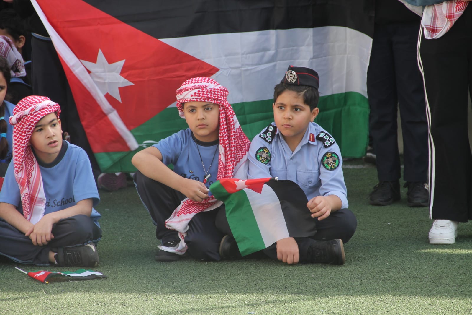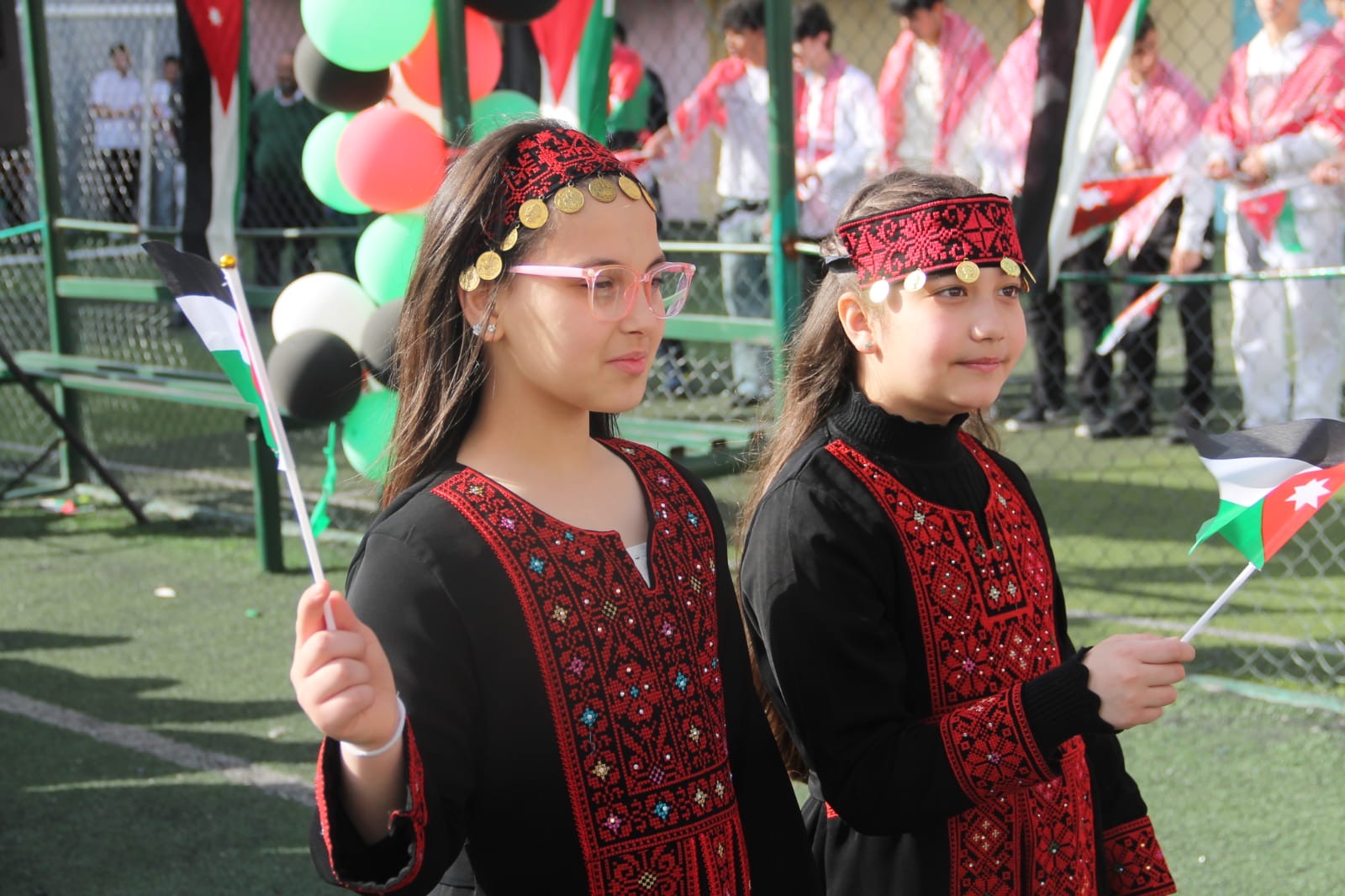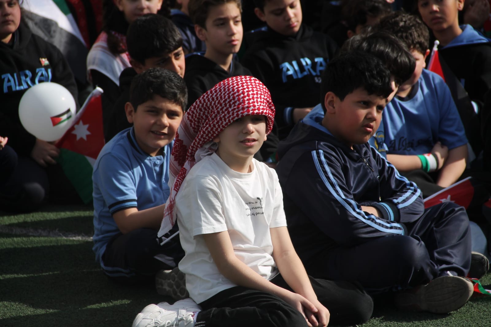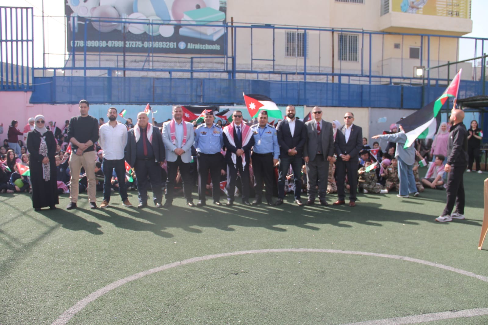 عمان جو- نظمت مدارس الرأي اليوم احتفالا بمناسبة يوم العلم في ملعب المدرسة في عمان.