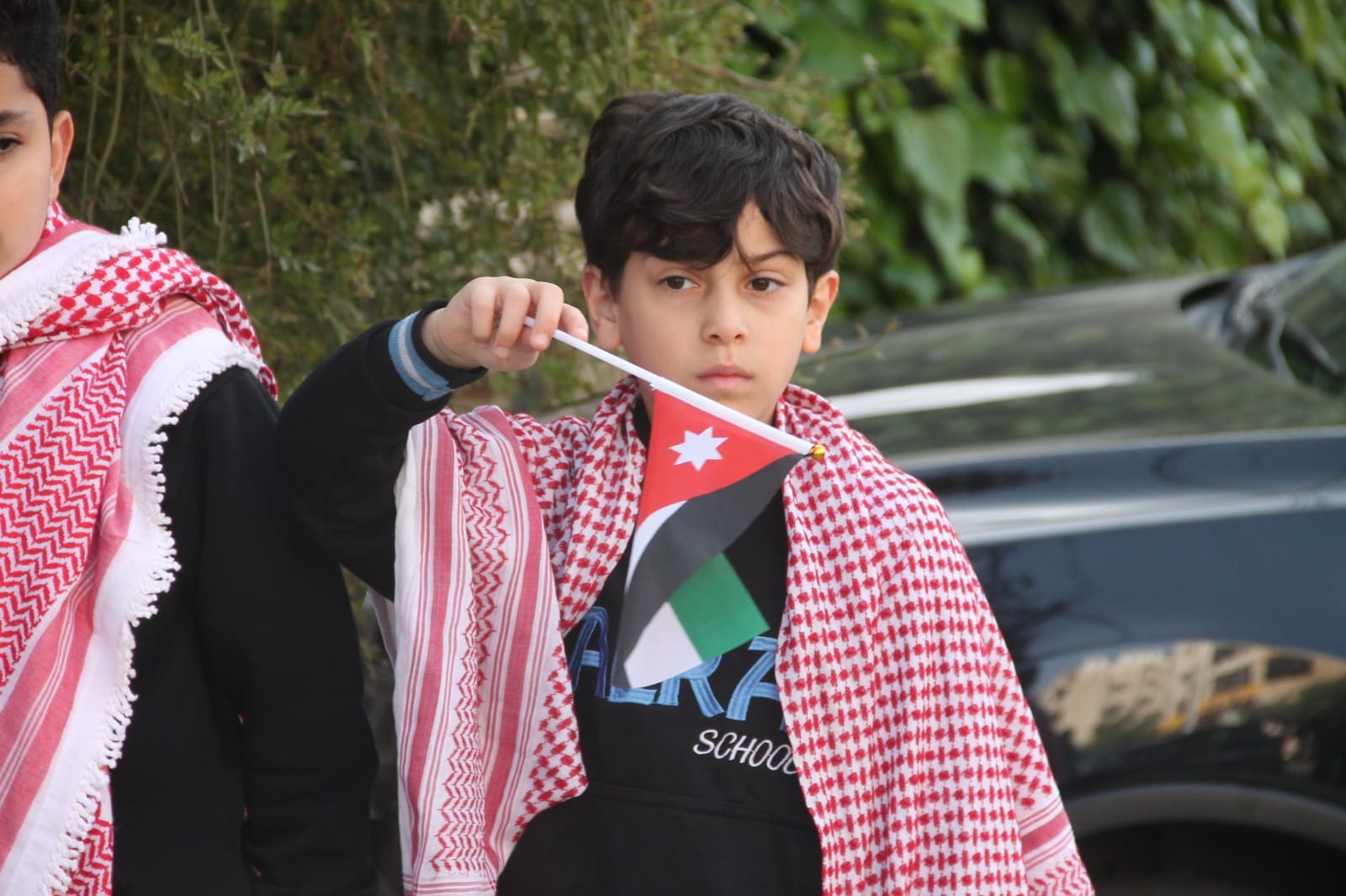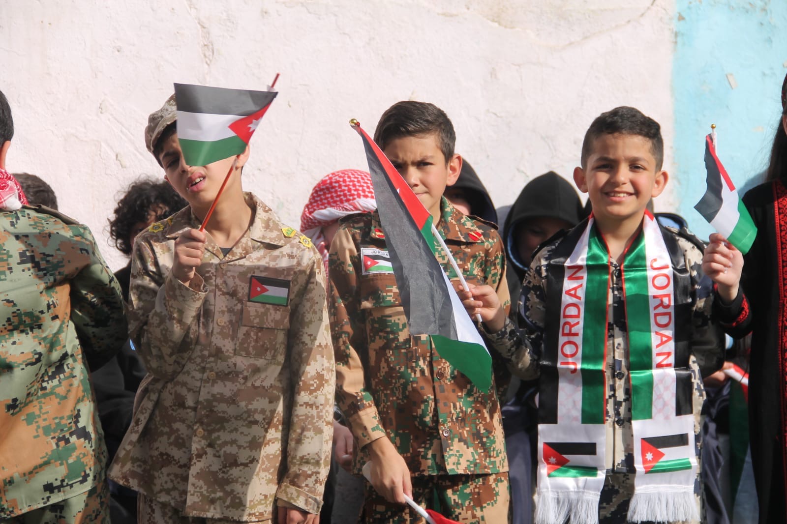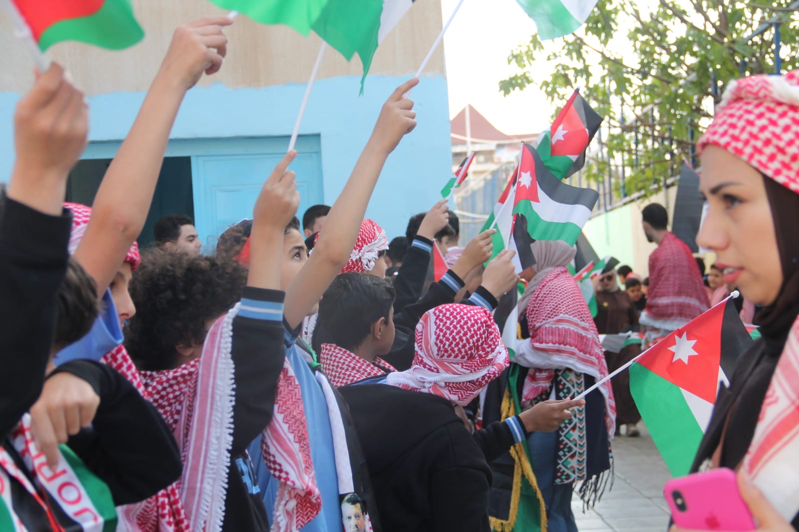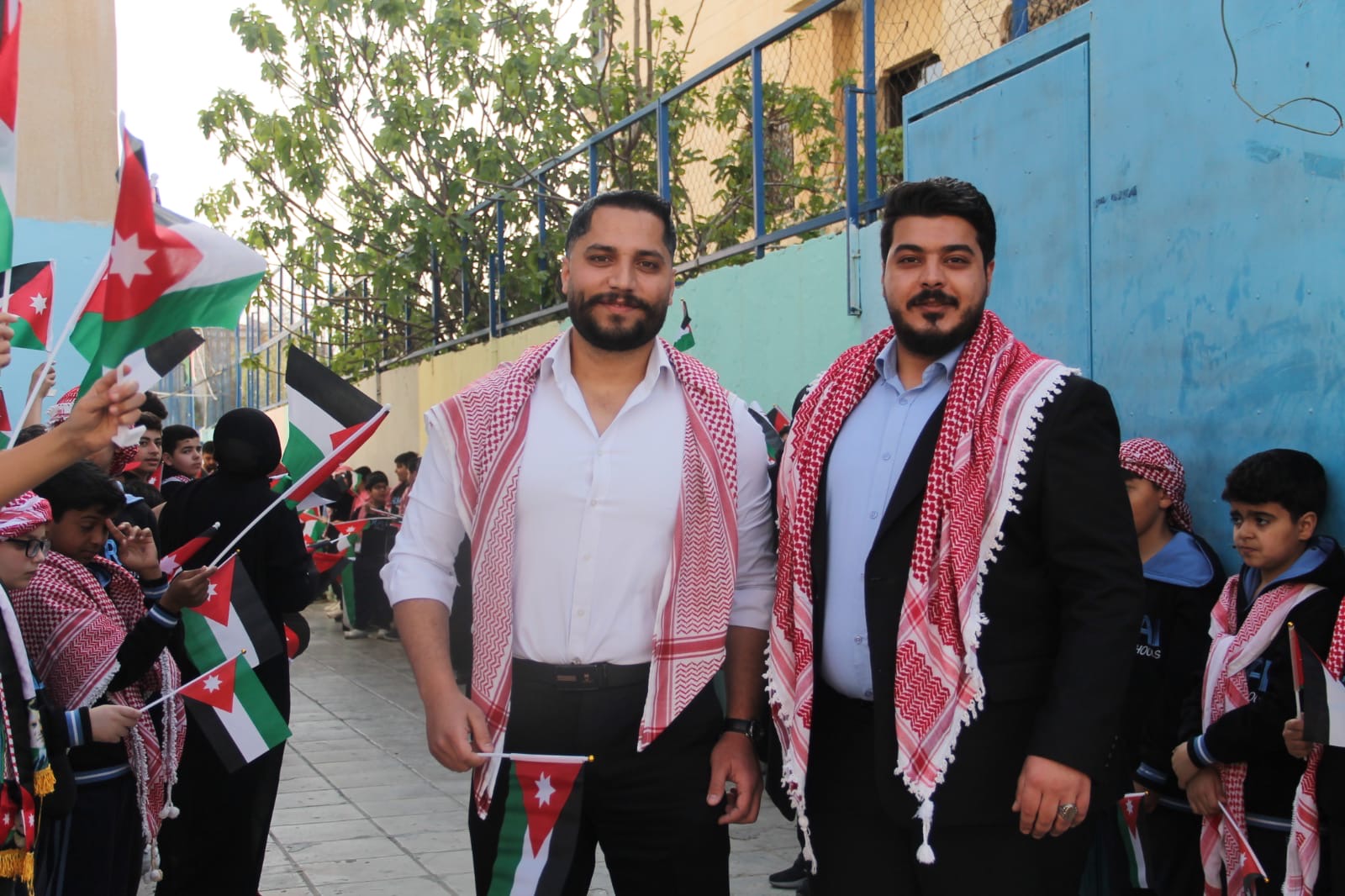 عمان جو- نظمت مدارس الرأي اليوم احتفالا بمناسبة يوم العلم في ملعب المدرسة في عمان.