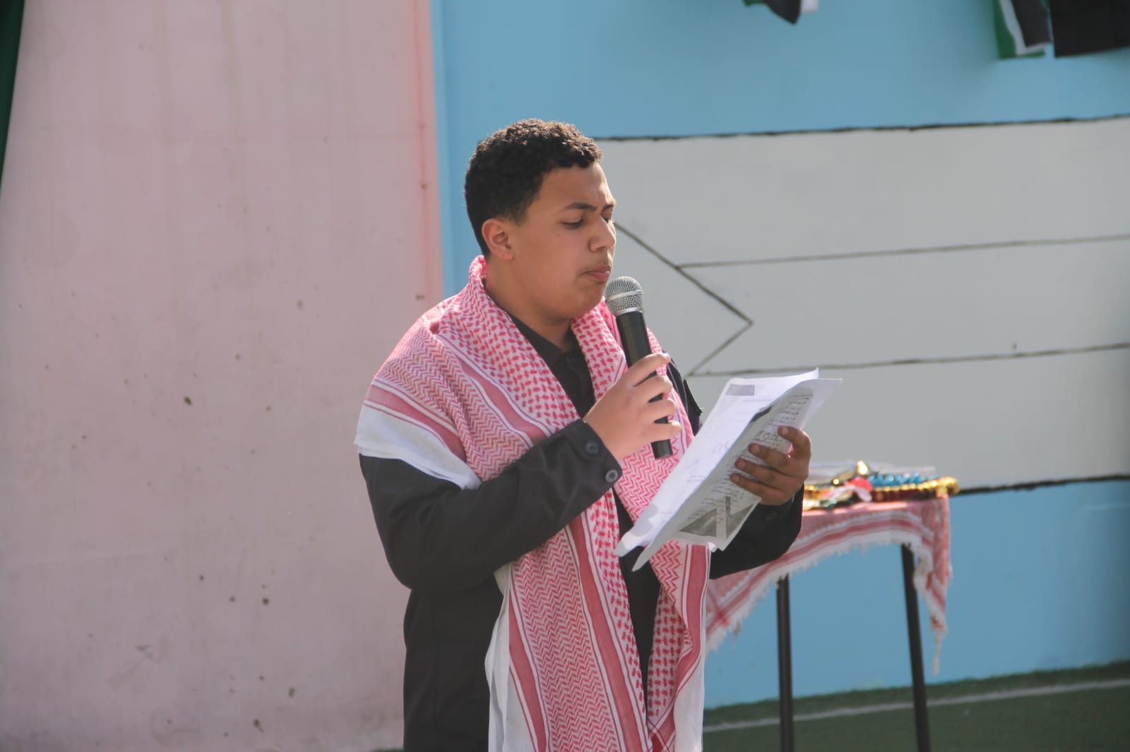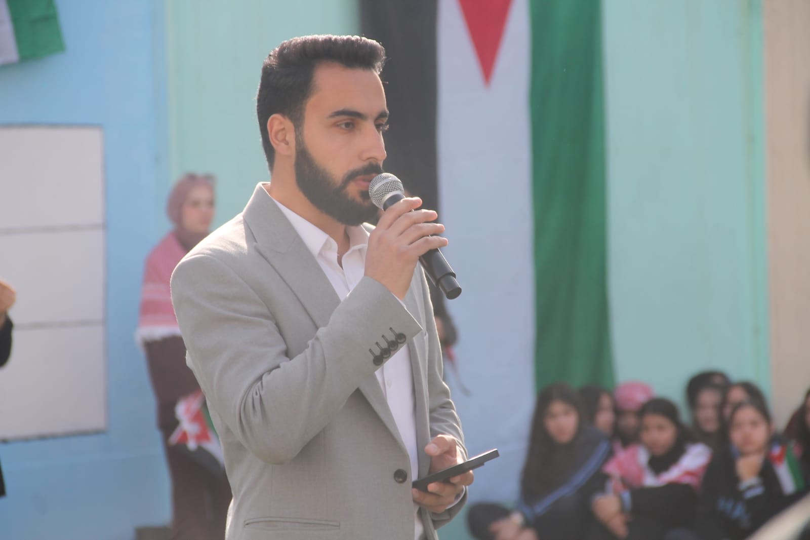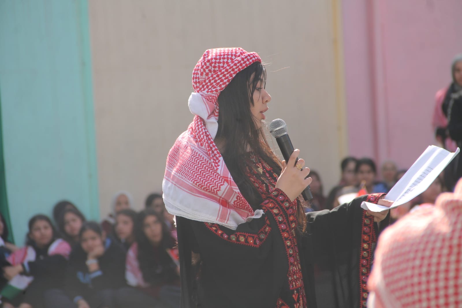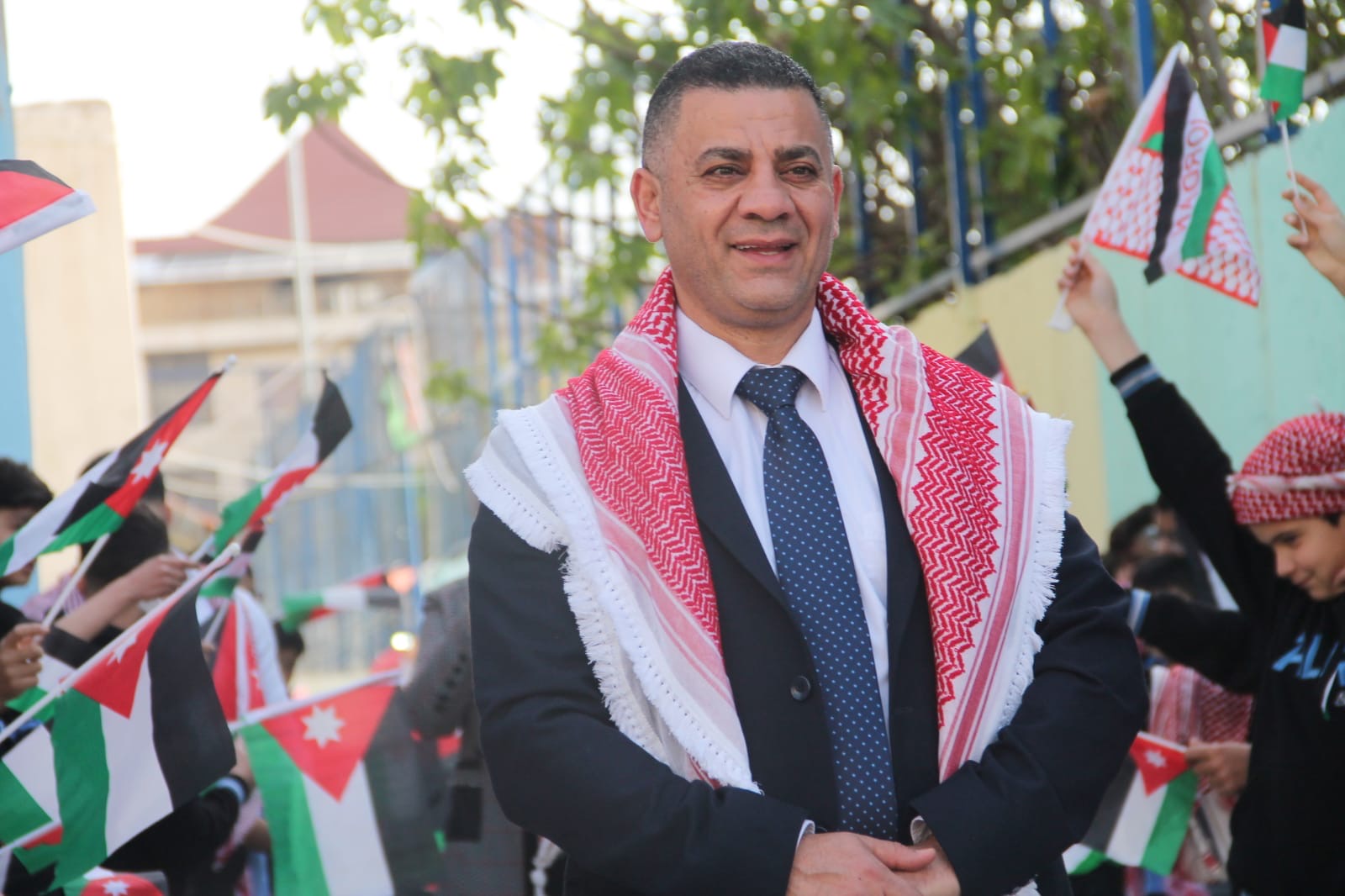 عمان جو- نظمت مدارس الرأي اليوم احتفالا بمناسبة يوم العلم في ملعب المدرسة في عمان.