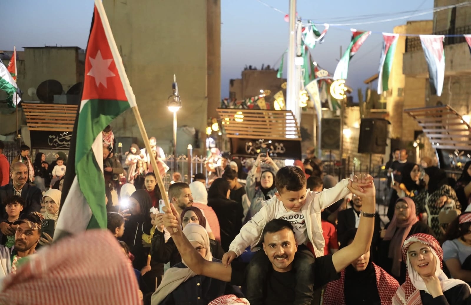 تل إربد يتوشح بالأعلام الأردنية في مشاهد تعيد لوسط المدينة ألقه التاريخي