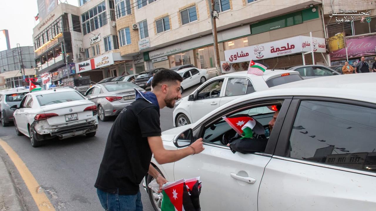 وجاء الاحتفال على دوار شاكر حيث تزين المكان بالأعلام الأردنية، وسط حضور لافت من الأهالي والفعاليات الشبابية في أجواء وطنية عبرت عن الاعتزاز بالراية الأردنية ومعاني الانتماء والولاء