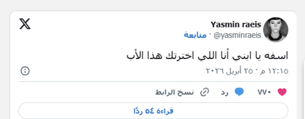 ياسمين رئيس تُشعل الجدل برسالة لابنها: آسفة على اختيار والدك