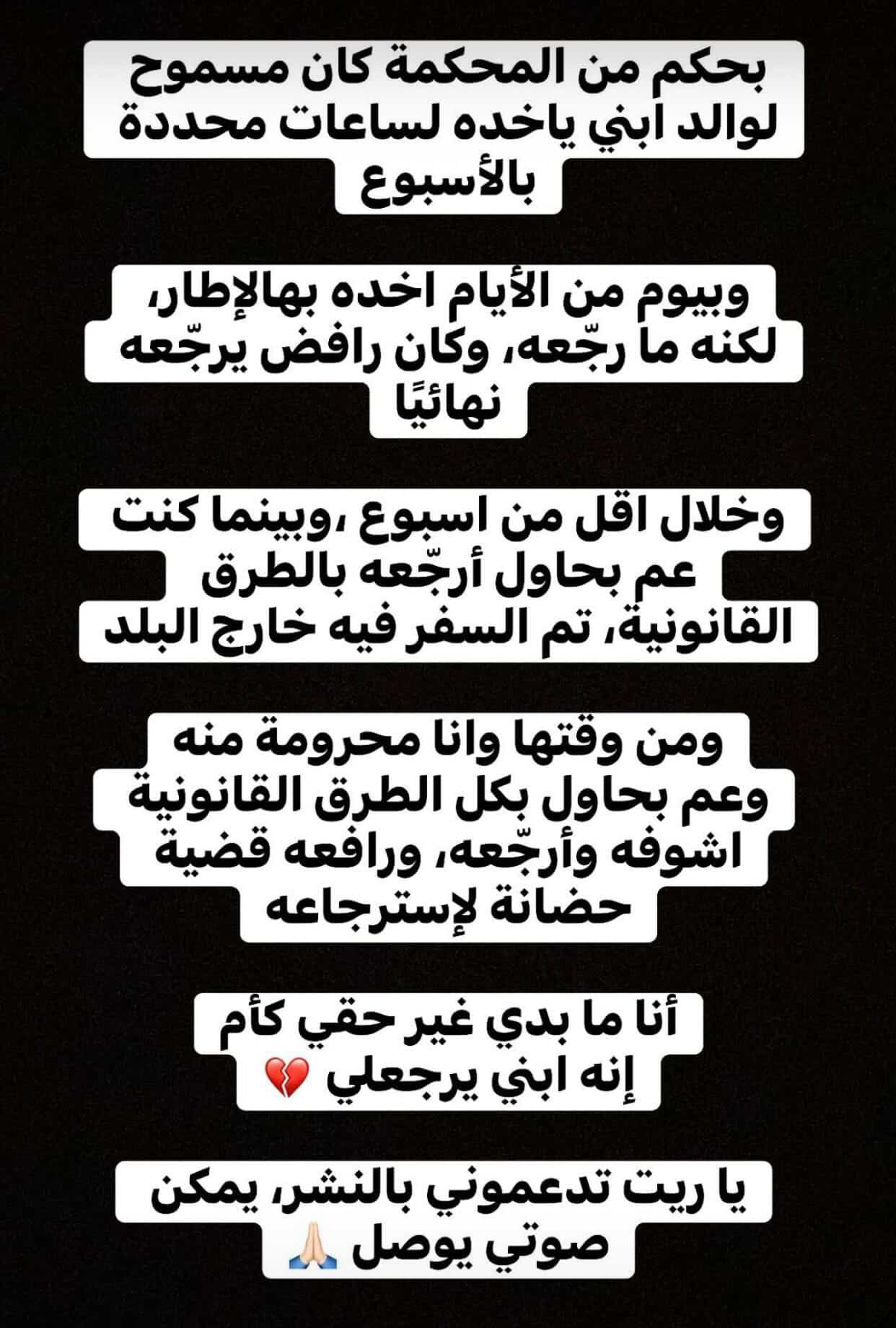 بناشد كل إنسان عنده ضمير يساعدني او يوصل صوتي، يمكن مشاركة او كلمة تكون سبب إني اشوف ابني من جديد