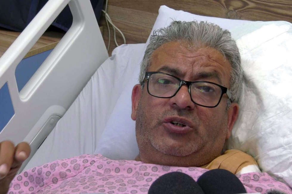 الصحافي علي السمودي يتلقى العلاج بعد إصابته برصاصة في الظهر (أيار 2022)