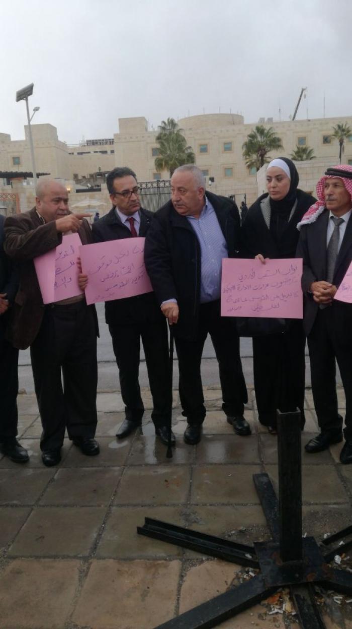 عمان جو - توجه عدد من النواب اليوم الاربعاء، لتنفيذ وقفة احتجاجية امام السفارة الامريكية في عمان رفضا لقرار ترمب بنقل السفارة الامريكية الى القدس.