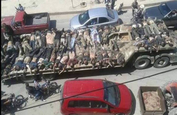 وجاب مسلحو تنظيم “ب ي د”، ذراع منظمة “بي كا كا” في سوريا، شوارع مدينة عفرين، التابعة لمحافظة حلب السورية الخميس، وهم يعرضون جثثاً لمجموعة من مقاتلي الجيش السوري الحر، بعد أن وضعوها على متن شاحنة مكشوفة، وعرضوها على الملأ.