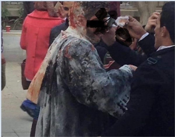 بالصور .. طلاب يرشقون زميلهم بالبيض والكاتشاب بعد تخرجه من جامعة اليرموك