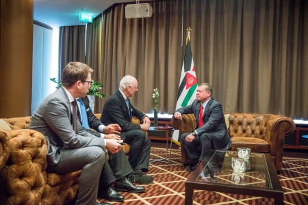 فقد اجتمع جلالته مع كل من مبعوث الأمم المتحدة والجامعة العربية إلى سوريا ستيفان دي مستورا، ورئيس إقليم كردستان العراق مسعود برزاني، ووزير الدفاع الإسرائيلي موشيه يعلون، حيث جرى تناول تطورات الأوضاع على الساحتين الإقليمية والدولية.
