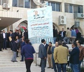 اعتصم العشرات من المحامين عصر اليوم امام مجمع النقابات احتجاجا على مراكز المساعدة القانونية.