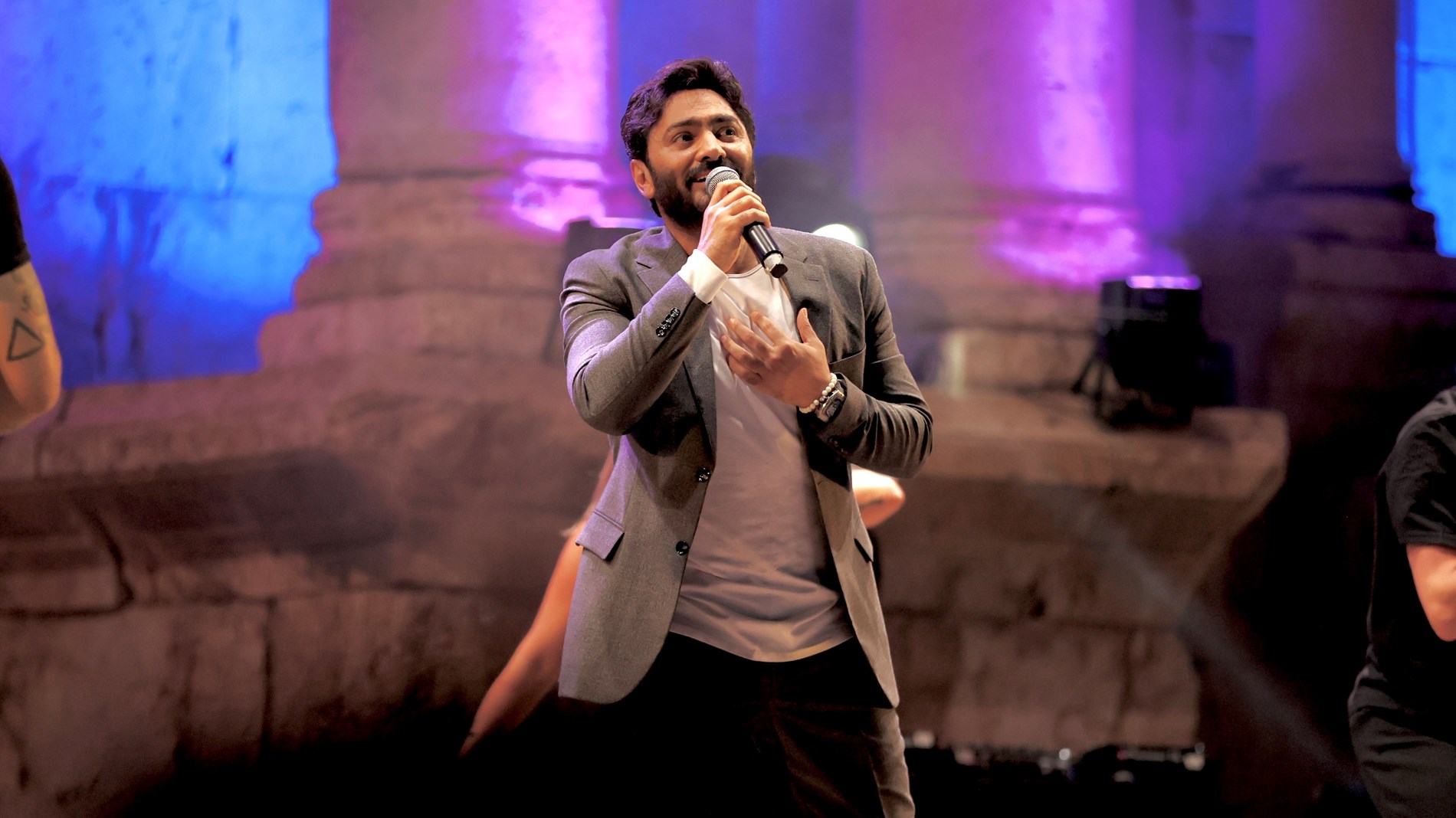 تامر حسني يطلب المنسف ويعلن اكتشاف موهبة أردنية في أضخم حفل بجرش
