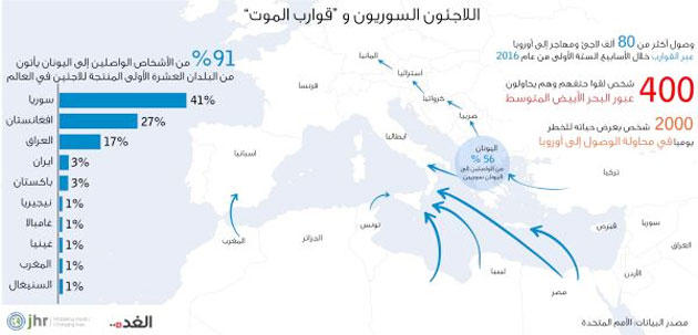 وتابعت: 'النسبة الأكبر بين اللاجئين والمهاجرين الذين وصلوا إلى أوروبا خلال العام 2015، والبالغ عددهم 950,000 شخص، فروا من الصراع في سورية المستمر منذ خمسة أعوام تقريباً، في حين، أن الغالبية غادرت سورية العام 2015، وكان لجوؤهم من دول لبنان وتركيا والأردن، بعد أن أمضوا أعواماً مليئة بالمصاعب وفقدوا الأمل بتحسن الأوضاع'.