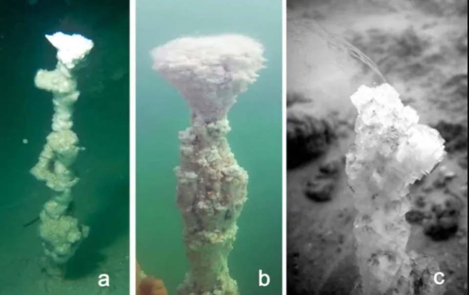 عمان جو -كشف فريق بحثي من مركز هيلمهولتز للأبحاث البيئية بألمانيا عن ظاهرة جيولوجية جديدة في البحر الميت تُعرف بـ'المداخن الملحية'. تتشكل هذه المداخن نتيجة تصاعد محلول ملحي كثيف من أعماق القاع، حيث يتبلور فور خروجه إلى المياه المشبعة بالأملاح، مكونًا أعمدة تشبه الدخان الأبيض.