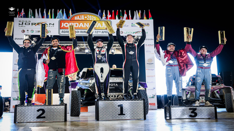 عمان جو- توج السائق الأرجنتيني خوان كروز ياكوبيني بلقب سباق 'باها' الأردن، امس السبت، خلال حفل أقيم في ساحة الثورة العربية الكبرى بمدينة العقبة.