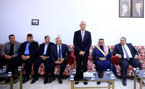 ونقل العيسوي، خلال زيارته بيت العزاء، في منطقة بلعما بمحافظة المفرق، تعازي ومواساة جلالة الملك وسمو ولي العهد، إلى ذوي الفقيد وعموم عشيرة الخوالدة، سائلا المولى عز وجل أن يتغمده بواسع رحمته.