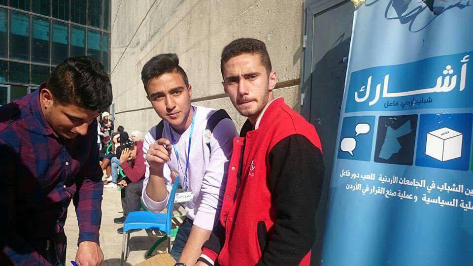 وشارك عملية الاستقطاب أيضا طلبة أشارك + من حلمة ترانزيت التي تهدف إلى تحسين نظام المواصلات في مجمع الجامعة لخطي الشمالي والأغوار، لما يعانيه الطلبة من تأخير وغياب متكرر عن المحاضرات بسبب قلة عدد الباصات المتوفرة على الخطين