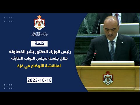 كلمة رئيس الوزراء الدكتور بشر الخصاونة خلال جلسة مجلس النواب الطارئة لمناقشة الأوضاع في قطاع #غزة